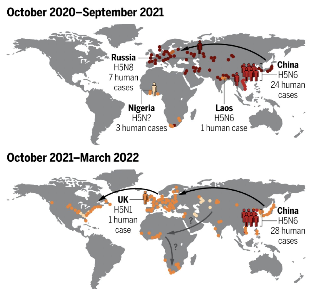Map showing the spread of highly pathogenic avian influenza (HPAI