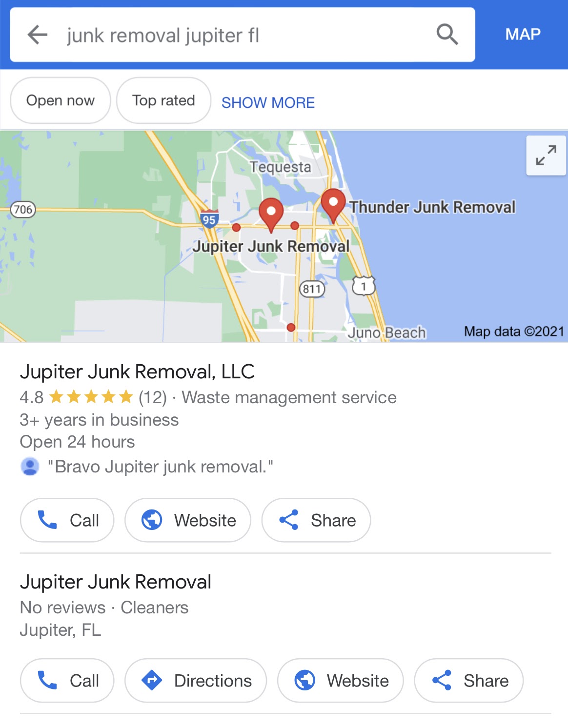 Duplicate Listings “Jupiter Junk Removal” in Jupiter FL doesn’t