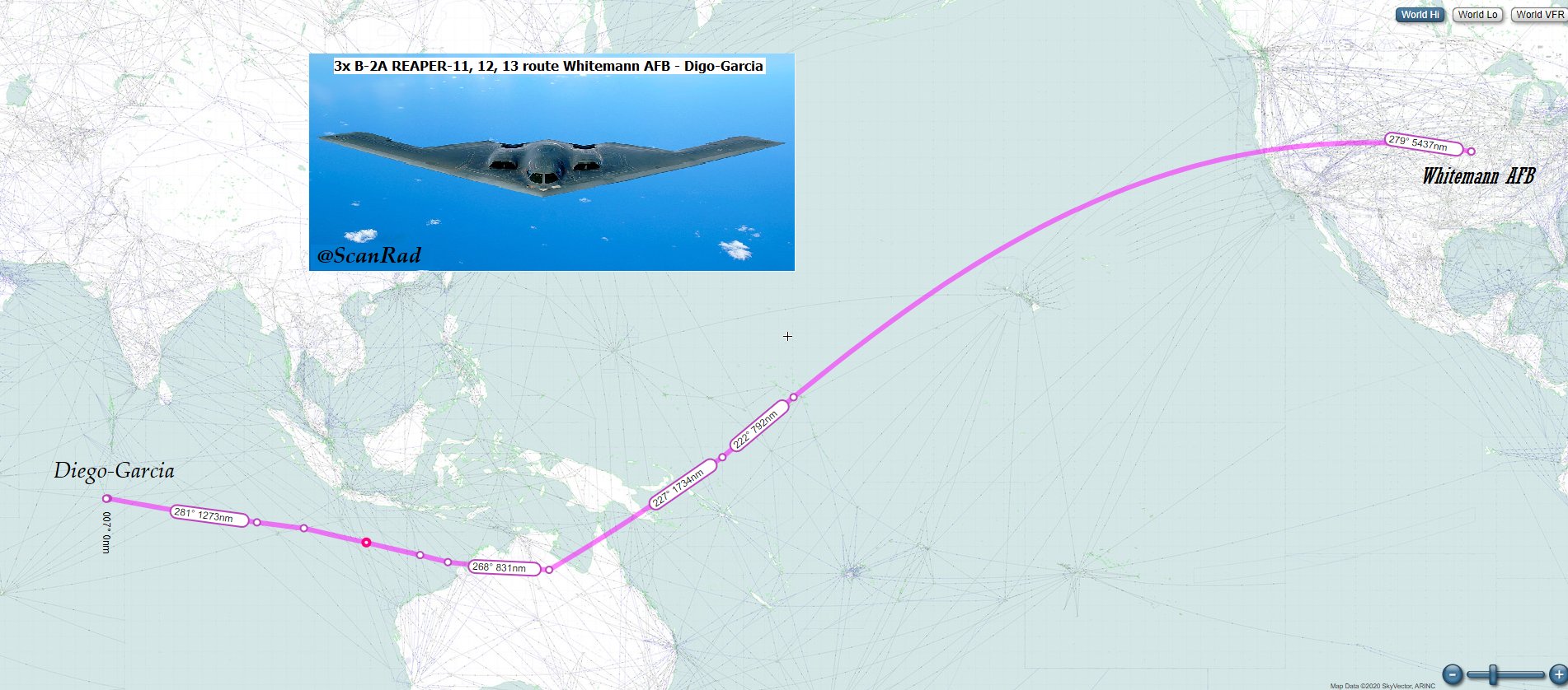 ScanRadar on X: “Three B 2a “Spirit” flight route from Whitema AFB